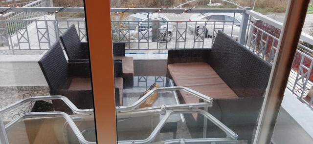 Svi apartmani pored sopstvenih balkona imaju mogućnost korišćenja velike zajedničke terase opremljene baštenskim nameštajem i ležaljkama za sunčanje.